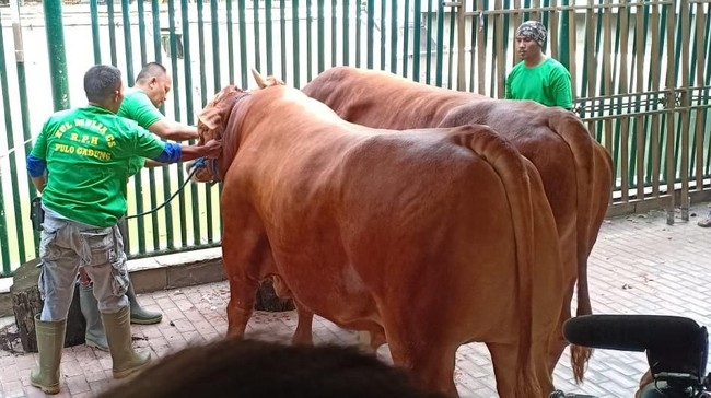 "(Sapi Jokowi) beratnya sekitar 1,7 ton. Ini sapinya jenis limosin. Umurnya sekitar 3,5 tahun, ya, sama kayak umur ngerawat-nya," ujar Wakil Ketua Humas Masjid Istiqlal Abu Hurairah.
