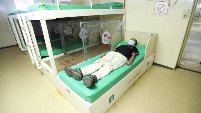 Adapun fasilitas isolasi apung terdiri dari tempat tidur, crew kapal, alat kesehatan, APD untuk crew kapal, tenaga kesehatan, tenaga keamanan, konsumsi dan penanganan limbah medis.