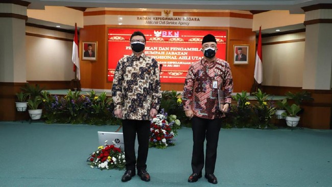Pelantikan dilakukan sesuai Keputusan Presiden Nomor 22/M Tahun 2021 tentang Pemberhentian dari Jabatan Pimpinan Tinggi Utama dan Madya serta Pengangkatan dalam Jabatan Fungsional Ahli Utama.