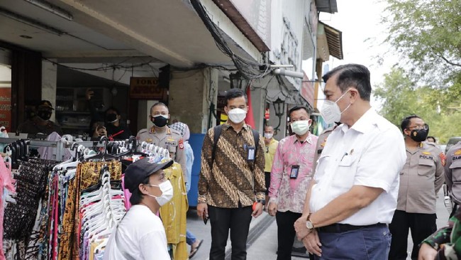 Setelah mengunjungi fasilitas isolasi terpusat, Luhut juga menyempatkan diri mengunjungi Pasar Klewer dan Pusat Wisata Malioboro. Di sana dia mengatakan kepada para pedangan mengenai pelonggaran aktivitas ekonomi.