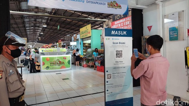 Pemerintah mulai memberlakukan aplikasi PeduliLindungi untuk masuk pasar tradisional. Uji coba dilakukan di beberapa pasar, salah satunya di Pasar Modern 8 Alam Sutera, Tangerang Selatan. Tentu, kesediaan handphone hingga paket internet juga harus memenuhi. Lantas bagaimana jika terkendala?