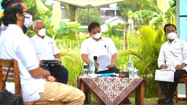 Memulai serangkaian agenda dalam kunjungan kerjanya di Provinsi Daerah Istimewa Yogyakarta, Airlangga bertemu muka dan berbincang langsung dengan para alumni Program Kartu Prakerja di kawasan kuliner Karangmloko, Yogyakarta.