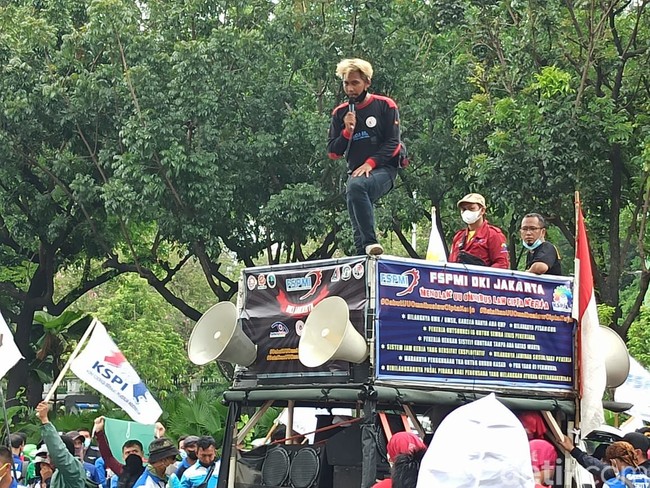 "Kita diminta siapkan 7 perwakilan untuk masuk ke dalam Balai Kota," kata Ketua Divisi Aksi Garda Metal DKI Jakarta, Rifqi Mubarok saat berorasi di atas mobil box.