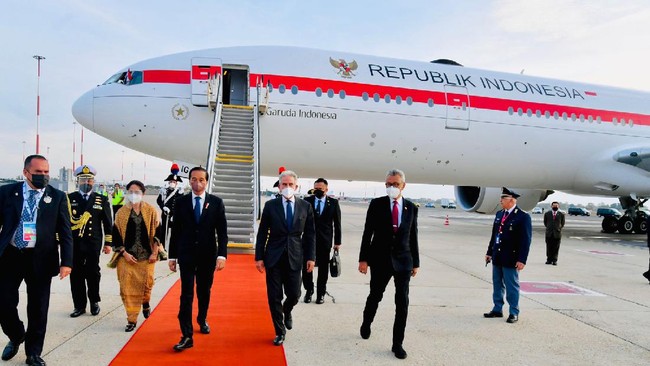 Presiden Joko Widodo (Jokowi) tak memakai pesawat kepresidenan untuk kunjungan kerja ke luar negeri perdananya di masa pandemi. Jokowi memilih Garuda Indonesia untuk mengantarkannya bertandang ke Inggris Raya, Italia, dan Uni Emirat Arab.