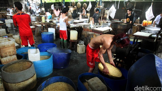 "Akibat daripada naiknya harga kedelai ini. Terus gitu naik terus, dari Rp 9 ribu sekarang jadi Rp 11.500, jadi banyak yang berhenti produksi terutama yang 20kg/hari beli kedelainya," tutur Aip kepada detikcom, Senin (14/2/2022).