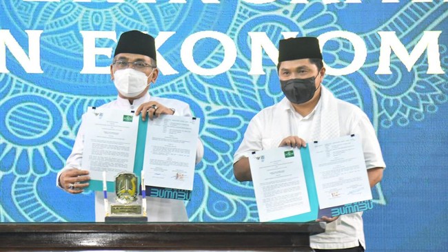 "Diimplementasikan hari ini dengan menandatangani kerja sama antara BUMN-nya punya NU dan BUMN punya Indonesia," ujar Erick saat menghadiri Puncak Peringatan Hari Lahir (Harlah) NU ke-99, di Pondok Pesantren Syaichona Moh Cholil, Bangkalan, Kamis, ditulis Jumat (18/02/2022).