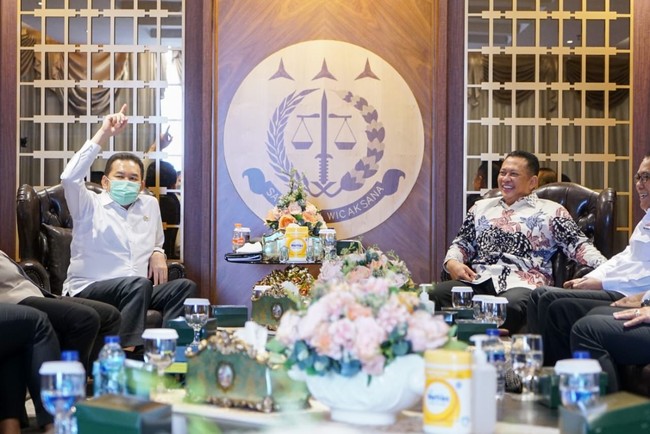 Ketua MPR RI Bambang Soesatyo melakukan pertemuan dengan Jaksa Agung ST Burhanuddin di Kantor Kejaksaan Agung hari ini. Usai pertemuan, Bamsoet mengatakan KADIN dan Kejaksaan Agung akan bekerja sama untuk mengedukasi asosiasi usaha di bawah naungan KADIN di berbagai daerah.