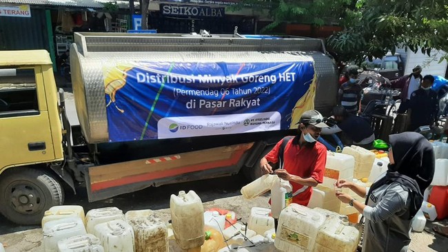"Kami dari Badan Pangan Nasional bersama BUMN ID Food, APPSI, teman-teman Pasar Jaya, dan Dinas Perdagangan, kita mencoba mendistribusikan kembali minyak goreng curah yang harusnya sudah di harga Rp 14.000, tapi karena ini sudah kita rencanakan sebelumnya, maka masih tetap dengan harga sebelumnya. Kepada pedagang Rp 10.500 dan Rp 11.500 diberikan kepada teman-teman atau masyarakat yang membeli, ini ada di 10 titik di DKI," jelas Kepala Badan Pangan Nasional Arief Prasetyo Adi, dalam keterangan tertulis, Rabu (16/3//2022).