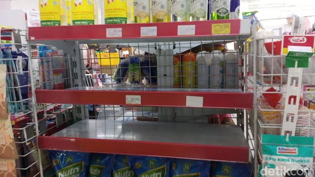 Hari ini detikcom, menelusuri beberapa gerai Alfamart di kawasan Pamulang, Tangerang Selatan. Di gerai tersebut tidak ada minyak goreng.