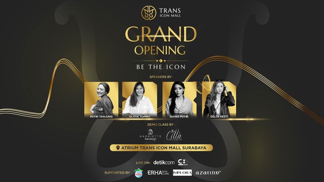 Trans Icon Mall Surabaya mengumumkan pelaksanaan Grand Opening yang akan diselenggarakan pada tanggal 5-7 Agustus 2022. Bagi yang tidak bisa menghadiri Grand Opening secara langsung, pembukaan Trans Icon Mall Surabaya dapat disaksikan secara online melalui live streaming detikcom x CXO.