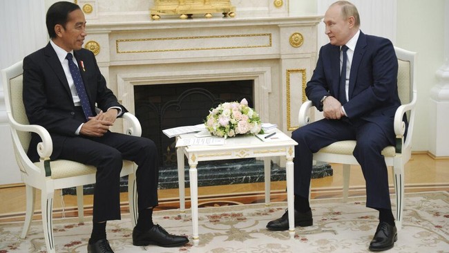 Presiden Joko Widodo (Jokowi) bercerita tentang kunjungannya ke Rusia dan Ukraina pada Juni lalu. Menurutnya sulit mempertemukan kedua pemimpin negara, yaitu Vladimir Putin dan Volodymyr Zelensky.