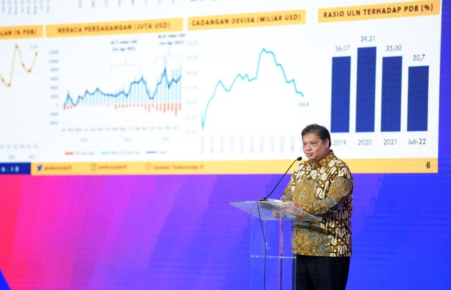 "Meski berbagai tantangan silih berganti, patut disyukuri bahwa ekonomi Indonesia mampu tumbuh 5% selama tiga triwulan berturut-turut, termasuk di Q2 2022. Pemerintah optimistis pertumbuhan ekonomi Indonesia mampu mencapai target 5,2% di 2022, dan pada 2023 pertumbuhan ekonomi Indonesia diproyeksikan 5,3%. Pertumbuhan ini akan sangat bergantung kepada pengendalian pandemi, respons kebijakan ekonomi yang tepat, dan reformasi struktural," ungkap Airlangga dalam keterangan tertulis, Selasa (11/10/2022).