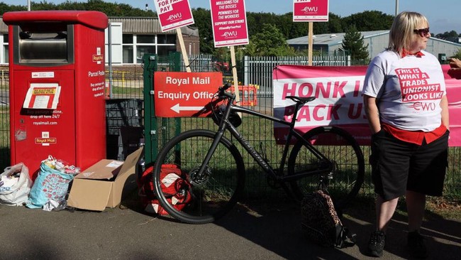 Pegawai kantor pos Royal Mail di Inggris melakukan aksi mogok kerja. Sekitar 115.000 petugas pos ini menuntut gaji naik di tengah biaya hidup yang meroket.