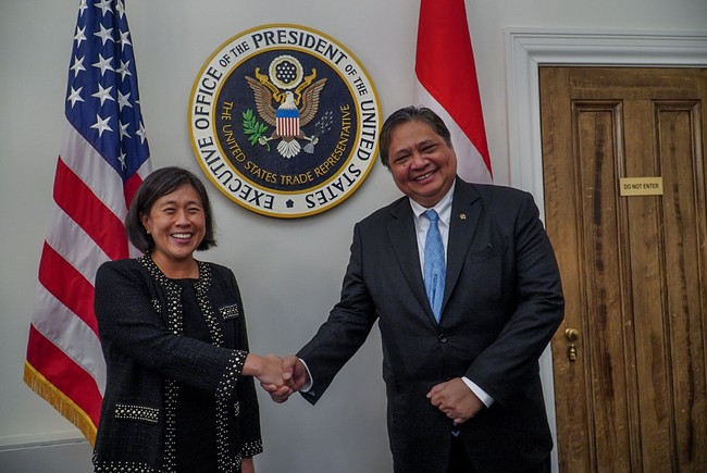 Menteri Koordinator Bidang Perekonomian Airlangga Hartarto bertemu dengan US Trade Representative (USTR), Ambassador Katherine Tai di Washington D.C pada Selasa (15/10). Keduanya membahas perkembangan Presidensi G20 Indonesia, kerja sama Indo-Pacific Economic Framework (IPEF) dan isu-isu ekonomi bilateral lainnya.