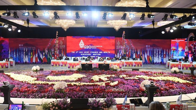 Menteri Keuangan dan Menteri Kesehatan (JFHM) G20 mengadakan pertemuan kedua di Hotel Mulia, Bali dengan format hybrid. Ini merupakan pertemuan terakhir sebelum Konferensi Tingkat Tinggi (KTT) G20 pada 15-16 November 2022.
