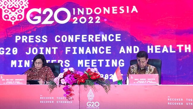 "Indonesia tentunya dapat menggunakan dana ini dan hal ini bertepatan dengan reformasi kesehatan di Indonesia," kata Sri Mulyani dalam konferensi pers The 2nd Joint Finance Ministers and Health Ministers Meeting G20 di Hotel Mulia, Bali, Sabtu (13/11/2022) malam.