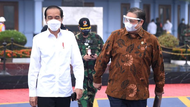 Menteri Koordinator Bidang Perekonomian Airlangga Hartarto laporan kepada Presiden Joko Widodo (Jokowi) tentang prediksi lembaga dunia terhadap perekonomian Indonesia. Menurut Airlangga, tiga lembaga dunia memprediksi ekonomi Indonesia di 2023 turun.
