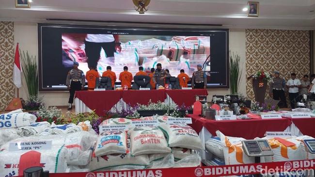 "Barang bukti yang didapatkan 350 ton beras Bulog yang sudah di-repacking, 5 timbangan digital, 6 mesin jahit, 8 ribu karung bekas Bulog, 10 ribu karung beras premium berbagai merek," kata Kabid Humas Polda Banten Kombes Pol Didik Hariyanto di Mapolda Banten, Serang, Jumat (10/2/2023).