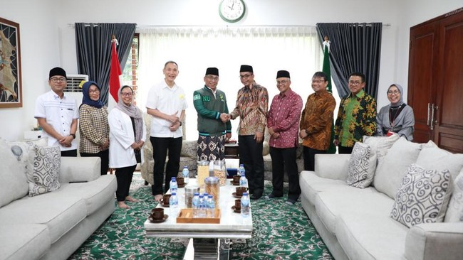 Direktur Jenderal Pajak Kementerian Keuangan Suryo Utomo menemui Ketua Umum PBNU Yahya Cholil Staquf (Gus Yahya), Kamis (2/3/2023). Pertemuan semula diagendakan di Kantor PBNU tapi karena Gus Yahya kurang sehat pertemuan kemudian digeser ke kediaman pribadi di kawasan Menteng, Jakarta Pusat.