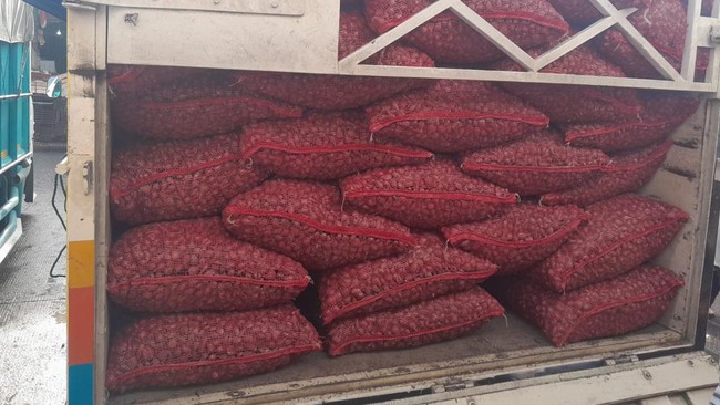 Sementara itu, untuk bawang merah datang sebanyak 25 truk yang berasal dari Brebes, Jawa Tengah. "Tadi semua ada 25 truk masuk ke sini, satu truknya itu 7 ton. Itu dari Brebes. Semua dari Kabupaten Brebes," ungkapnya.