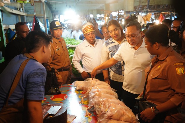 Menteri Perdagangan (Mendag) RI Zulkifli Hasan (Zulhas) meninjau Pasar Sentral Hamadi, Jayapura, Papua untuk mengecek pasokan dan harga bahan pokok (bapok). Dia mengatakan, harga kebutuhan pokok pasca Lebaran terpantau stabil dengan stok yang memadai.