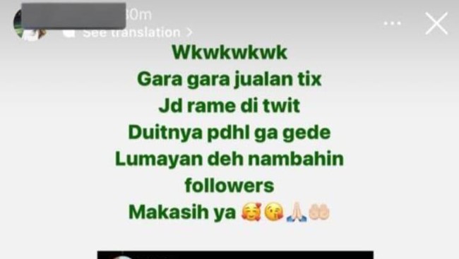 Mulanya, kejadian ini dibagikan oleh akun @hend****. Ia mengunggah gambar tangkapan layar berisikan Instagram story dari sebuah akun Instagram. Usut punya usut, sang pemilik akun Instagram ialah Lycie.