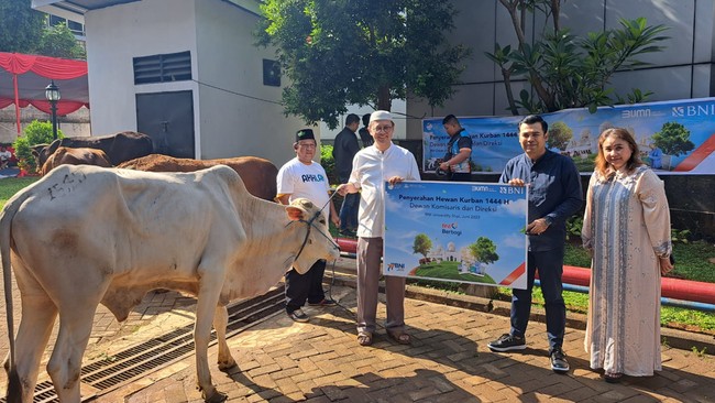 "Dalam momen yang suci ini, kami merasa terhormat dapat berpartisipasi dalam program penyaluran hewan kurban untuk berbagi kebahagiaan dan mendukung kehidupan masyarakat yang membutuhkan," ujar Corporate Secretary BNI Okki Rushartomo dalam keterangan tertulis, Kamis (29/6/2023).