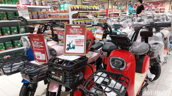 Khusus di Transmart Full Day Sale besok, ada diskon menggiurkan untuk produk sepeda listrik. Salah satunya ialah Exotic E-Bike Revolve menjadi hanya Rp 3,96 jutaan, dari harga normal Rp 4,95 jutaan khusus di Pulau Jawa dan di luar Pulau Jawa menjadi hanya Rp 4,20 jutaan dari harga normal Rp 5,25 jutaan.