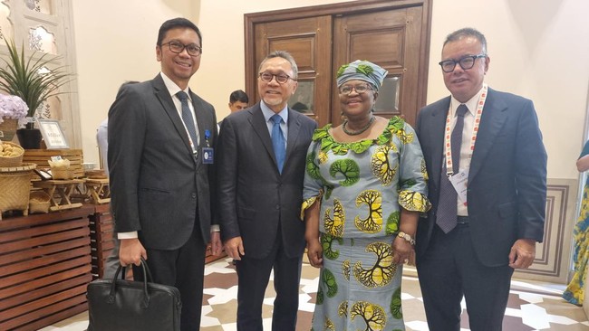Menteri Perdagangan RI Zulkifli Hasan dengan Dirjen World Trade Organization (WTO) Dr Ngozi Okonjo-Iweala menyempatkan diri membahas 3 hal penting terkait perdagangan internasional meski hanya bertemu dalam waktu singkat. Keduanya bertemu usai Sesi I Trade and Ministers Meeting (TIMM) G20 di Jaipur, India pada Kamis (24/8).