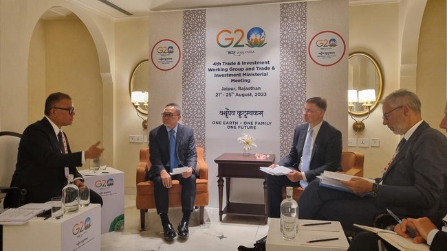 Perundingan mengenai kerja sama ekonomi komprehensif Indonesia-Uni Eropa ini ia bahas dalam pertemuan bilateral Indonesia-Uni Eropa. Kegiatan ini berlangsung di sela-sela Trade and Investment Ministers Meeting (TIMM) G20 India yang berlangsung 24-25 Agustus 2023.