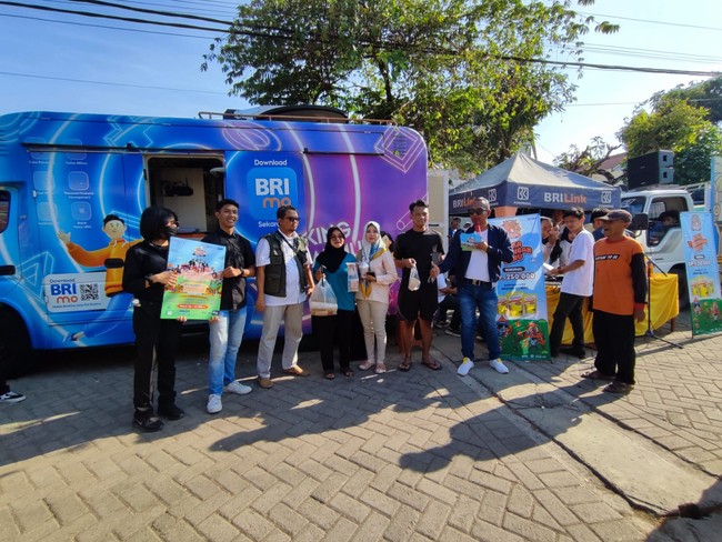 PT Bank Rakyat Indonesia (BRI) menggelar rangkaian Pesta Rakyat Simpedes (PRS) 2023 di Pasar Bungkal, Kecamatan Bungkal, Kabupaten Ponorogo, Senin (4/9/2023). Terdapat beberapa kegiatan yaitu pembukaan rekening baru, top up saldo BRImo, pembuatan QRIS langsung dengan mendatangkan para pedagang hingga sosialisasi penggunaan QRIS BRI juga aplikasi mobil banking milik BRI, BRImo.