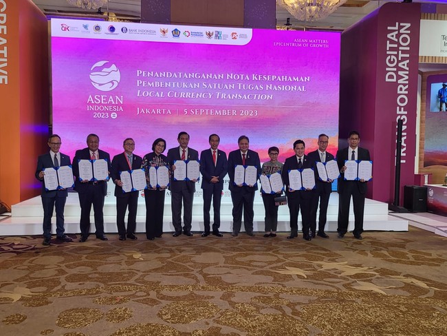 Hal tersebut menyusul ditandatanganinya nota kesepahaman dalam rangka peningkatan penggunaan mata uang lokal dalam transaksi dengan negara mitra yang digelar dalam rangkaian acara ASEAN-Indo-Pacific Forum di Hotel Mulia, Jakarta, Senin (5/9/2023).