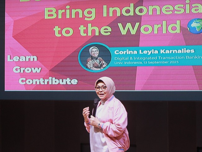 Dalam paparannya, Corina menjelaskan BNI berkomitmen untuk mengimplementasikan semangat kepemimpinan perempuan pada perusahaan dan memberikan banyak dampak positif bagi perseroan. Pemimpin perempuan dipercaya memiliki tiga nilai utama yaitu caring, inspiring dan collaboration yang merupakan nilai-nilai krusial bagi sebuah organisasi.