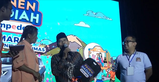 "Alhamdulillah saya dapat tahun ini. Semoga tahun-tahun besok kalian semua juga bisa mendapat hadiah mobil seperti saya ini," ujar Sumarno disambut teriakan amin oleh ribuan penonton yang hadir.