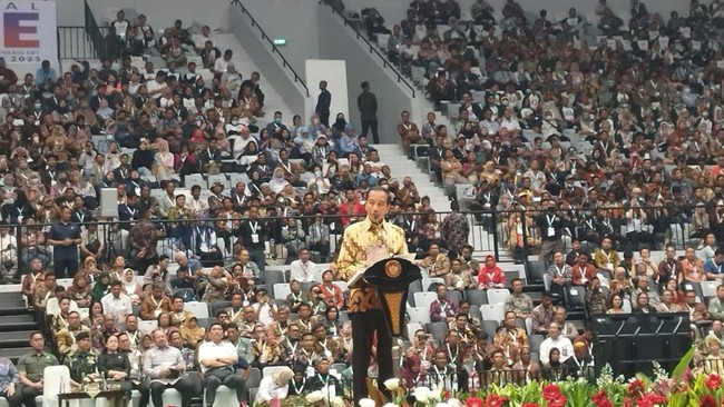 "Ada yang sudah menerima? Bisa diangkat? Bisa ditunjukkan? Bahwa betul-betul sudah bapak ibu terima semua," kata Jokowi dalam sambutannya di acara tersebut, sebelum memberikan kata sambutan dia sudah melakukan pembagian sertifikat secara simbolis.