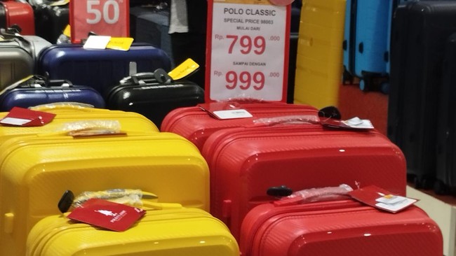 Pantauan di Transmart Mal Kota Kasablanka, Minggu (1/102023), ada diskon hingga 50% untuk produk koper keluaran Polo Classic. Misalnya saja untuk produk koper 24", harganya jadi hanya Rp 899 ribuan dari harga normalnya Rp 2,6 jutaan. Pembeli bisa hemat sampai Rp 1,7 jutaan.