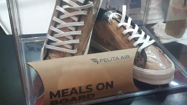 Pada gelaran Hub Space X KAI Expo 2023, Pelita Air memajang hasil olahan bungkus makanan tersebut. Bungkus makanan untuk penumpang disulap menjadi sepatu yang menarik.