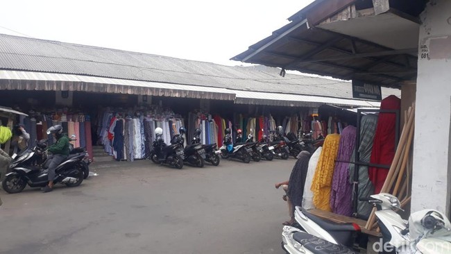 Ia yang sudah berdagang sejak 22 tahun lalu di pasar ini mengatakan biasanya toko bahan miliknya melayani para penjahit pakaian. Namun karena para penjahit ini juga sedang sepi pembeli, akibatnya barang dagangannya pun ikut sepi.
