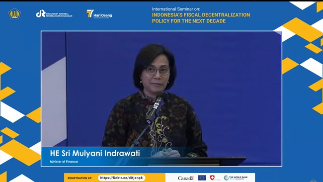 "Kami berharap untuk daerah-daerah yang terus mengukirkan prestasi, bisa menjadi inspirasi," kata Sri Mulyani, dalam sambutannya di acara International Seminar on Indonesia's Fiscal Decentralization Policy for The Next Decades, dikutip lewat saluran Youtube Kemenkeu RI, Selasa (3/10/2023).