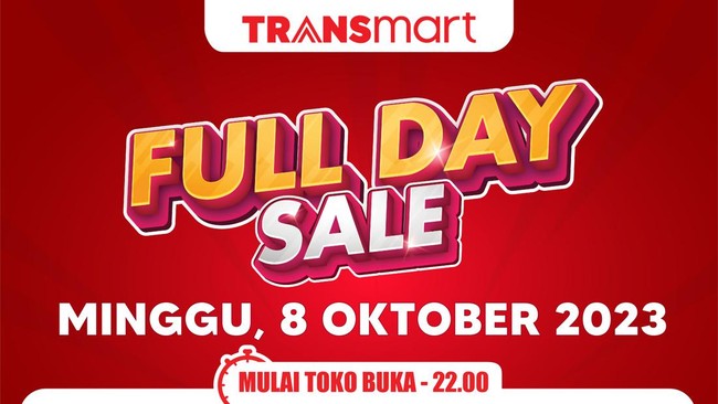 Transmart Full Day Sale sendiri berlangsung cuma hari ini. Dari mulai buka toko hingga tutup di jam 22.00 WIB. Bagi yang mau merapat ke Transmart, ada diskon hingga 50% dan ada tambahan 20% dengan menggunakan Allo Prime, Allo Paylater dan kartu kredit Bank Mega atau Bank Mega Syariah.