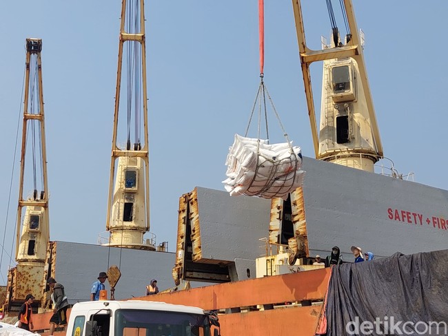 Berdasarkan pantauan detikcom, Kamis (12/10/2023), kapal berbendera Vietnam telah bersandar di pelabuhan. Dengan sejumlah awak kapal terpantau menurunkan beras asal Vietnam tersebut.