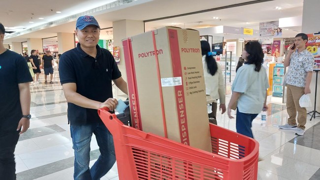 Isnal merupakan salah satu pelanggan Transmart Kota Kasablanka yang telah mengincar momentum ini. Alhasil, hari ini ia berhasil membawa pulang satu unit dispenser dengan harga miring, hingga hemat hampir setengah juta.