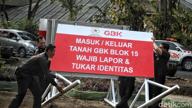 Tak hanya itu, pihak keamanan Hotel Sultan juga menggeser properti milik PPKGBK yang bertuliskan di antaranya 'Masuk/Keluar Tanah GBK Blok 15 Wajib Lapor & Tukar Identitas'.