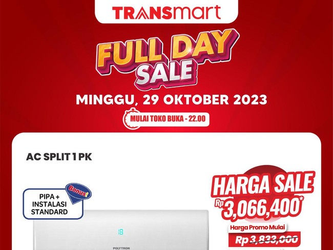 Transmart kembali menghadirkan Transmart Full Day Sale pada Minggu (29/10/2023). Program itu menghadirkan diskon besar-besaran, khususnya produk elektronik.