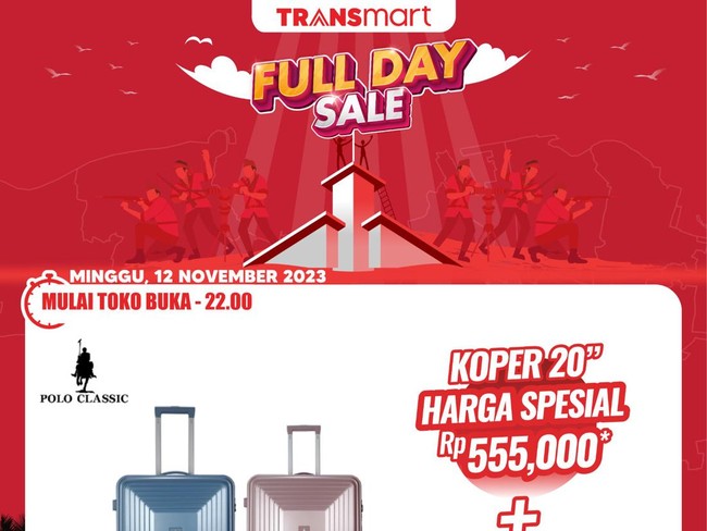 Selama gelaran Transmart Full Day Sale ada diskon hingga 50% untuk berbagai promo menarik lainnya menanti untuk produk-produk seperti buah-buahan, produk rumah tangga, pakaian, elektronik, hingga sepeda listrik. Tambahan 20% pun bisa didapatkan dengan Allo Prime, Kartu Kredit Bank Mega dan Bank Mega Syariah.