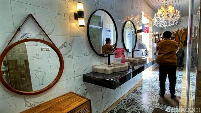 Terlihat juga di area ini terdapat standing mirror dan hiasan lampu yang bisa menyala. Dengan begitu pengunjung bisa melihat penampilan, memperbaiki riasannya, hingga ber-selfie ria.