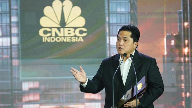 Menteri Badan Usaha Milik Negara (BUMN) Erick Thohir memperoleh penghargaan Best Leader for SOE Transformation dalam CNBC Indonesia Awards 2023. Penghargaan diserahkan langsung oleh Chairman CT Corp Chairul Tanjung.