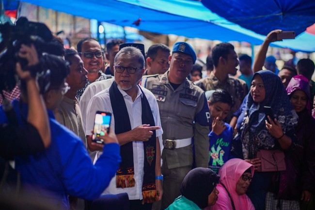 Menteri Perdagangan Zulkifli Hasan melakukan tinjauan harga bahan pokok di Pasar Batuphat Timur, Lhokseumawe, Aceh. Dalam tinjauan tersebut, Zulhas menemukan harga cabai yang murah.