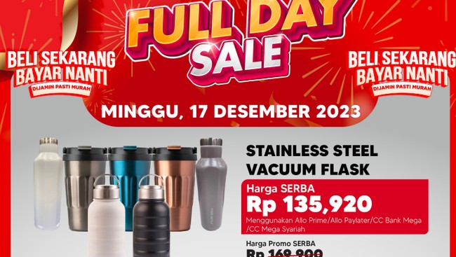 Harga diskon tersebut bisa didapatkan dengan pembayaran menggunakan Allo Prime, Allo Paylater, Kartu Kredit Bank Mega atau Bank Mega Syariah.
