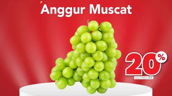 Sederet diskon ditawarkan dan berlaku di semua gerai Transmart seluruh Indonesia sejak toko buka hingga pukul 22.00 waktu setempat atau jam 10 malam. Salah satu produk yang diskon setiap hari adalah Anggur Muscat. Harga promo Anggur Muscat Rp 6.990 per 100 gram.